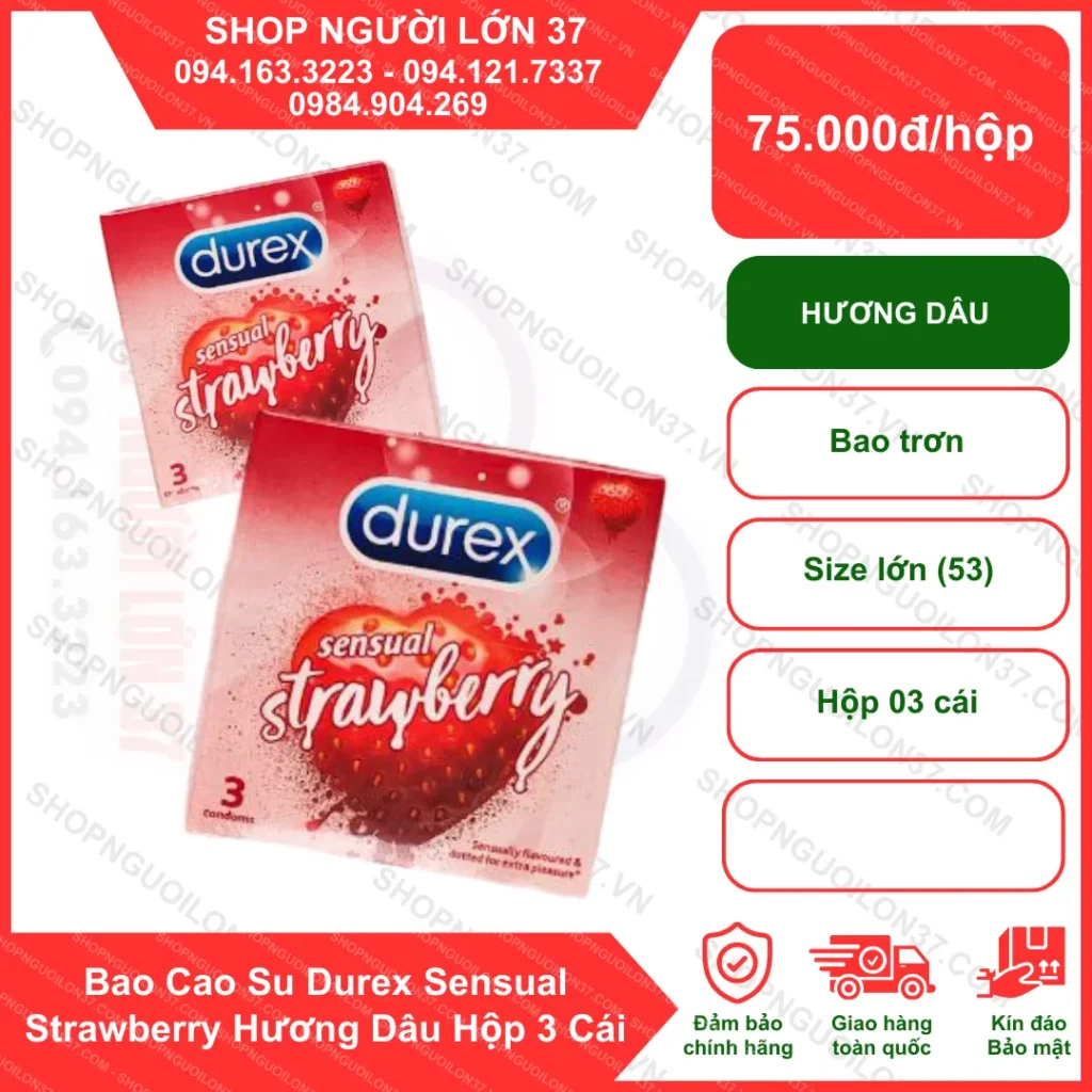 Nếu bạn đang muốn mua Bao cao su Durex Sensual Strawberry hương dâu tây – Hộp 3 cái chính hãng, giá tốt và giao hàng kín đáo, thì đừng bỏ qua SHOP NGƯỜI LỚN 37 – địa chỉ uy tín hàng đầu tại TP Vinh và toàn quốc.