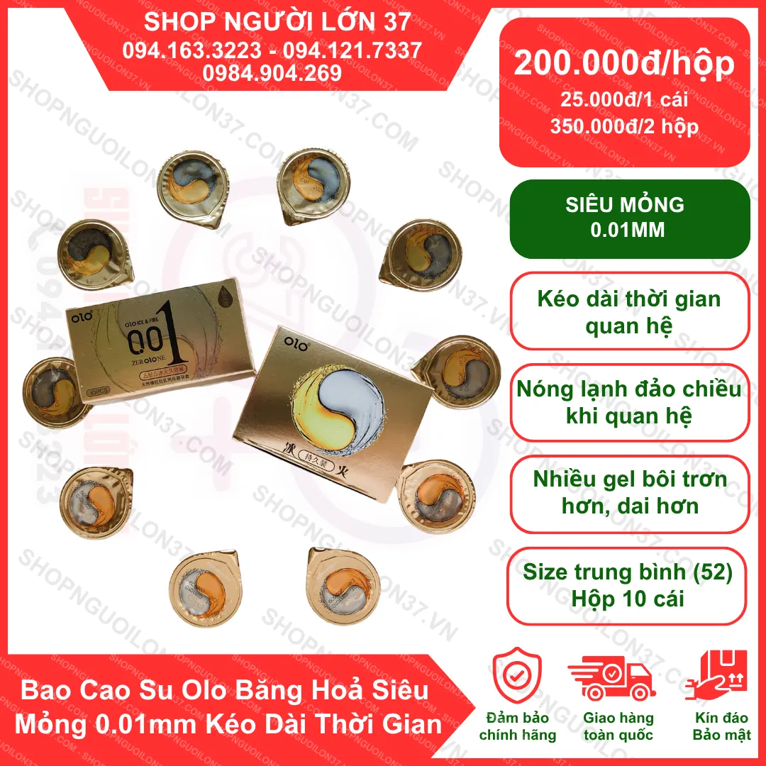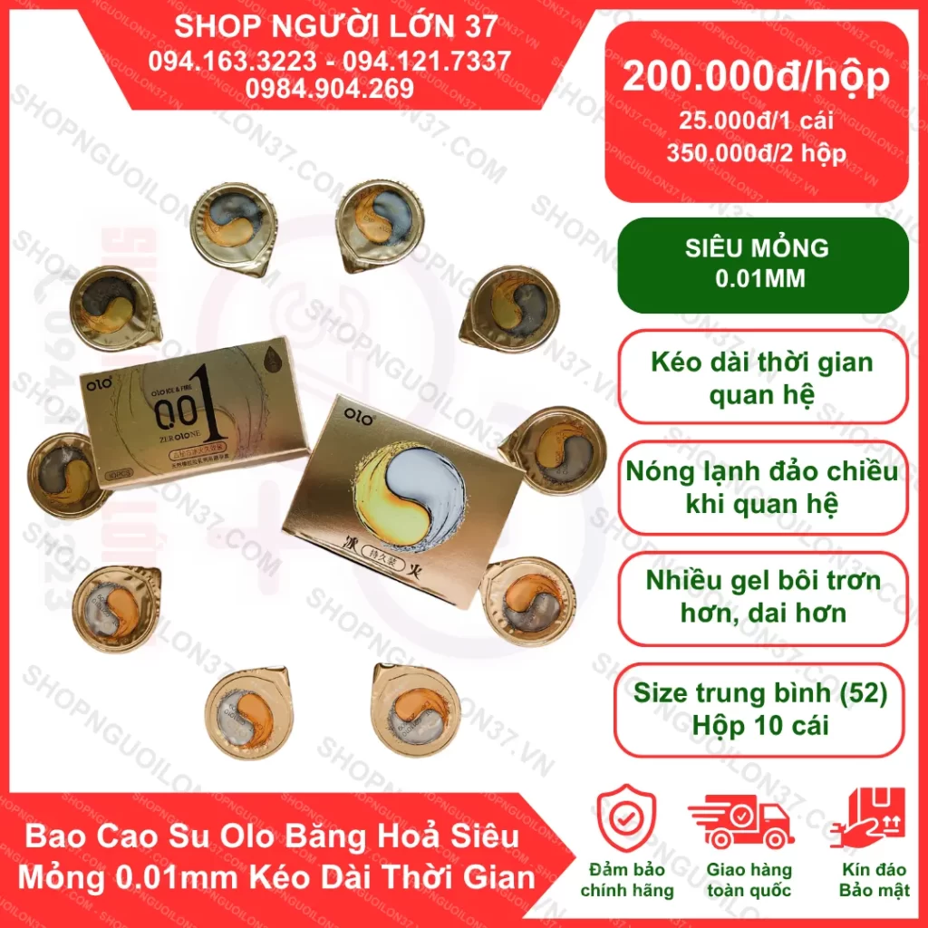 Nếu bạn đang muốn mua Bao cao su OLO băng hoả 0.01mm kéo dài thời gian siêu mỏng chính hãng, giá tốt và giao hàng kín đáo, thì đừng bỏ qua SHOP NGƯỜI LỚN 37 – địa chỉ uy tín hàng đầu tại TP Vinh và toàn quốc.