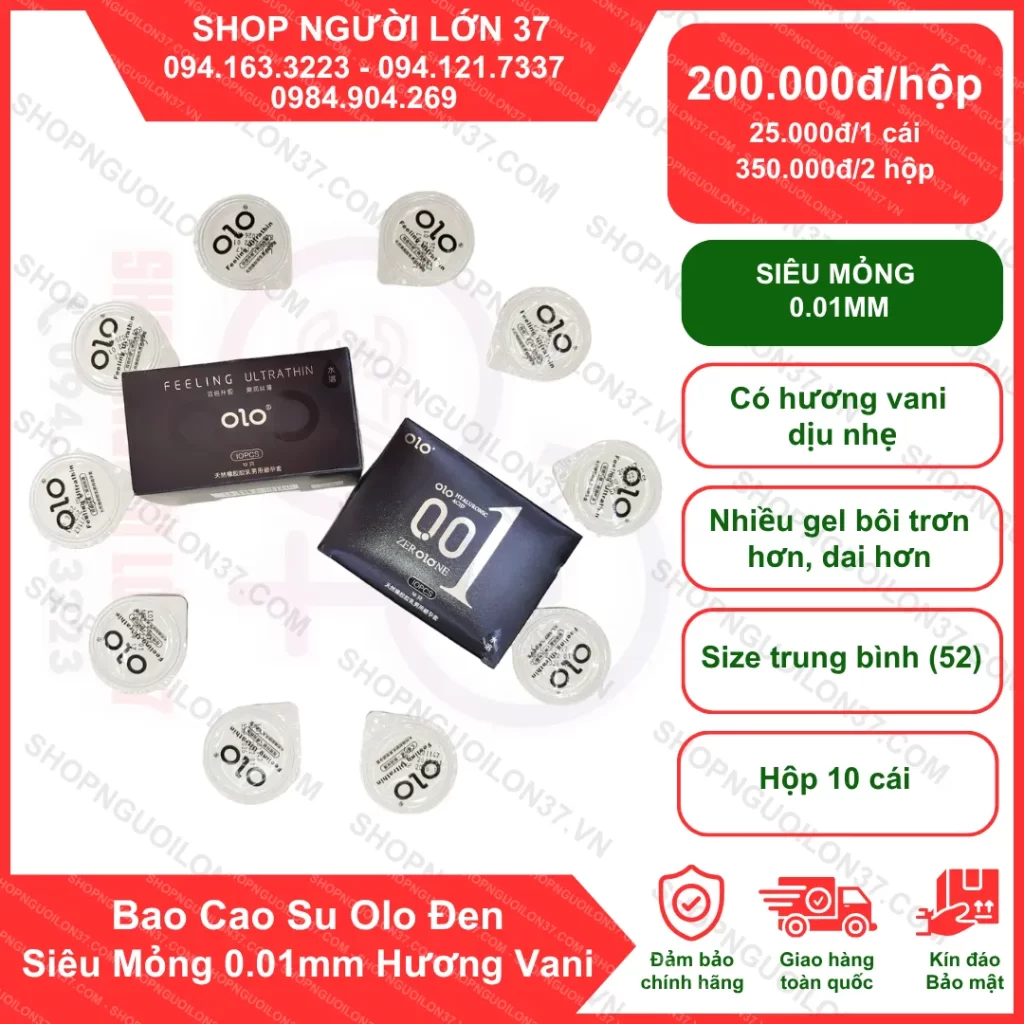 Nếu bạn đang muốn mua Bao Cao Su Olo Đen Siêu Mỏng 0.01mm Hương Vani chính hãng, giá tốt và giao hàng kín đáo, thì đừng bỏ qua SHOP NGƯỜI LỚN 37 – địa chỉ uy tín hàng đầu tại TP Vinh và toàn quốc.