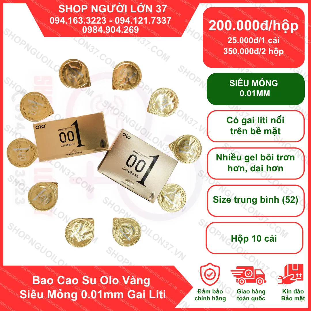 Nếu bạn đang muốn mua Bao cao su OLO vàng 0.01mm gai siêu mỏng chính hãng chính hãng, giá tốt và giao hàng kín đáo, thì đừng bỏ qua SHOP NGƯỜI LỚN 37 – địa chỉ uy tín hàng đầu tại TP Vinh và toàn quốc.