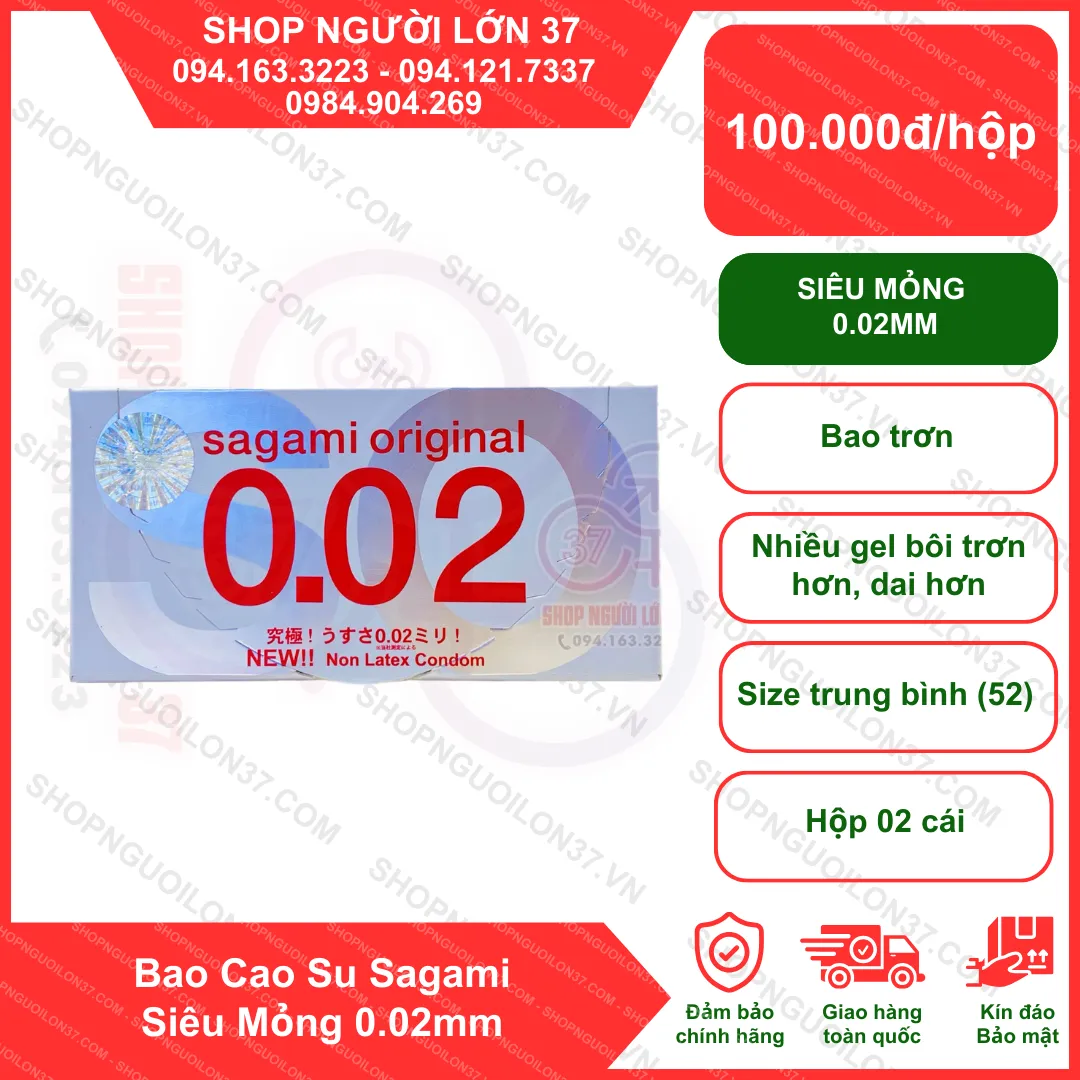Nếu bạn đang muốn mua Bao cao su Sagami 0.02 – Siêu mỏng 0.02mm – Hộp 2 cái chính hãng, giá tốt và giao hàng kín đáo, thì đừng bỏ qua SHOP NGƯỜI LỚN 37 – địa chỉ uy tín hàng đầu tại TP Vinh và toàn quốc.