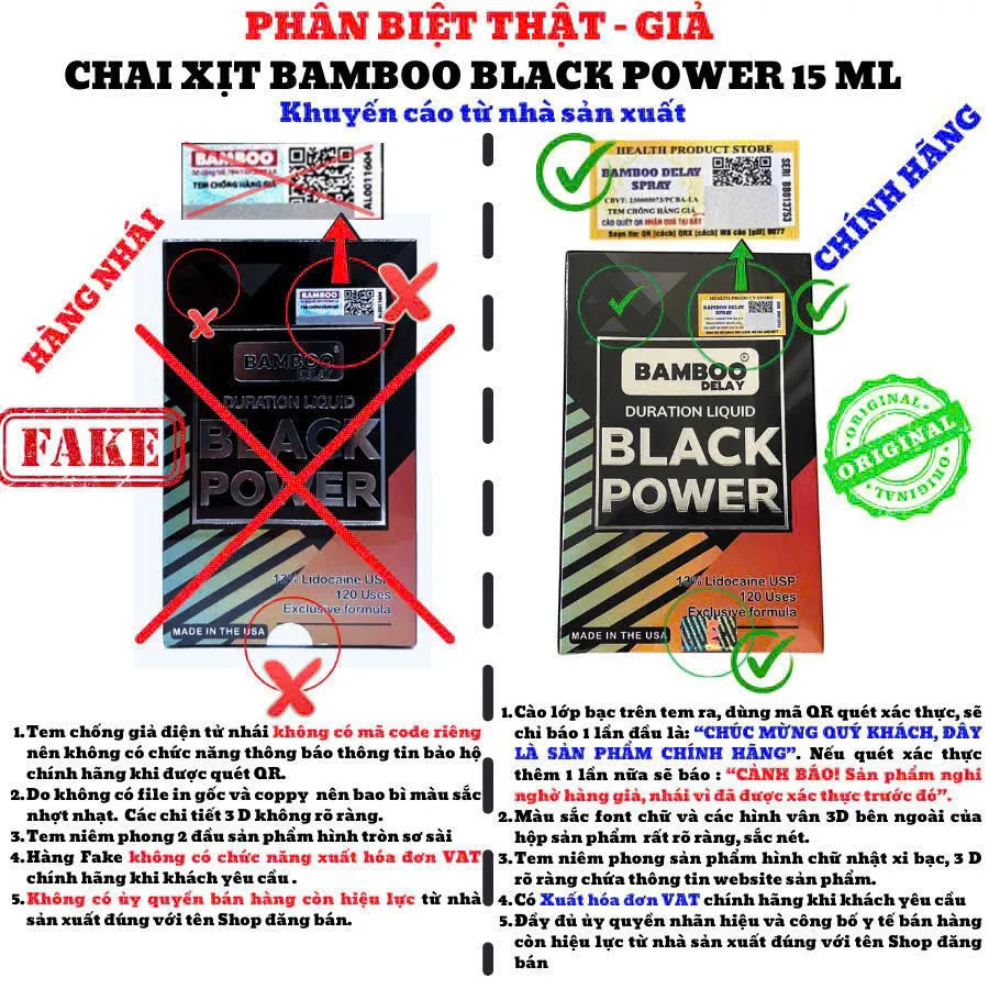 Để tránh mua nhầm, có thể kiểm tra bao bì và tem xác thực theo các dấu hiệu dưới đây. Đây là phần quan trọng giúp nhận biết nhanh xịt Bamboo Black Power chính hãng trước khi sử dụng.