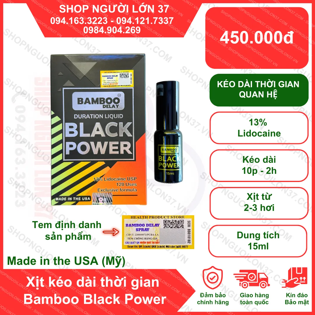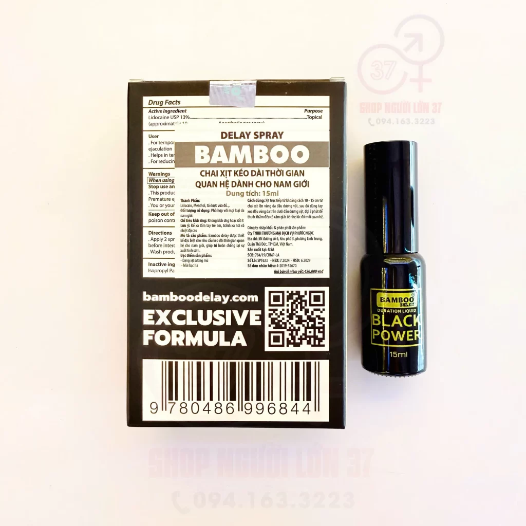 Nếu bạn đang muốn mua Chai xịt Bamboo Black Power 15ml – Kéo dài thời gian quan hệ chính hãng, giá tốt và giao hàng kín đáo, thì đừng bỏ qua SHOP NGƯỜI LỚN 37 – địa chỉ uy tín hàng đầu tại TP Vinh và toàn quốc.