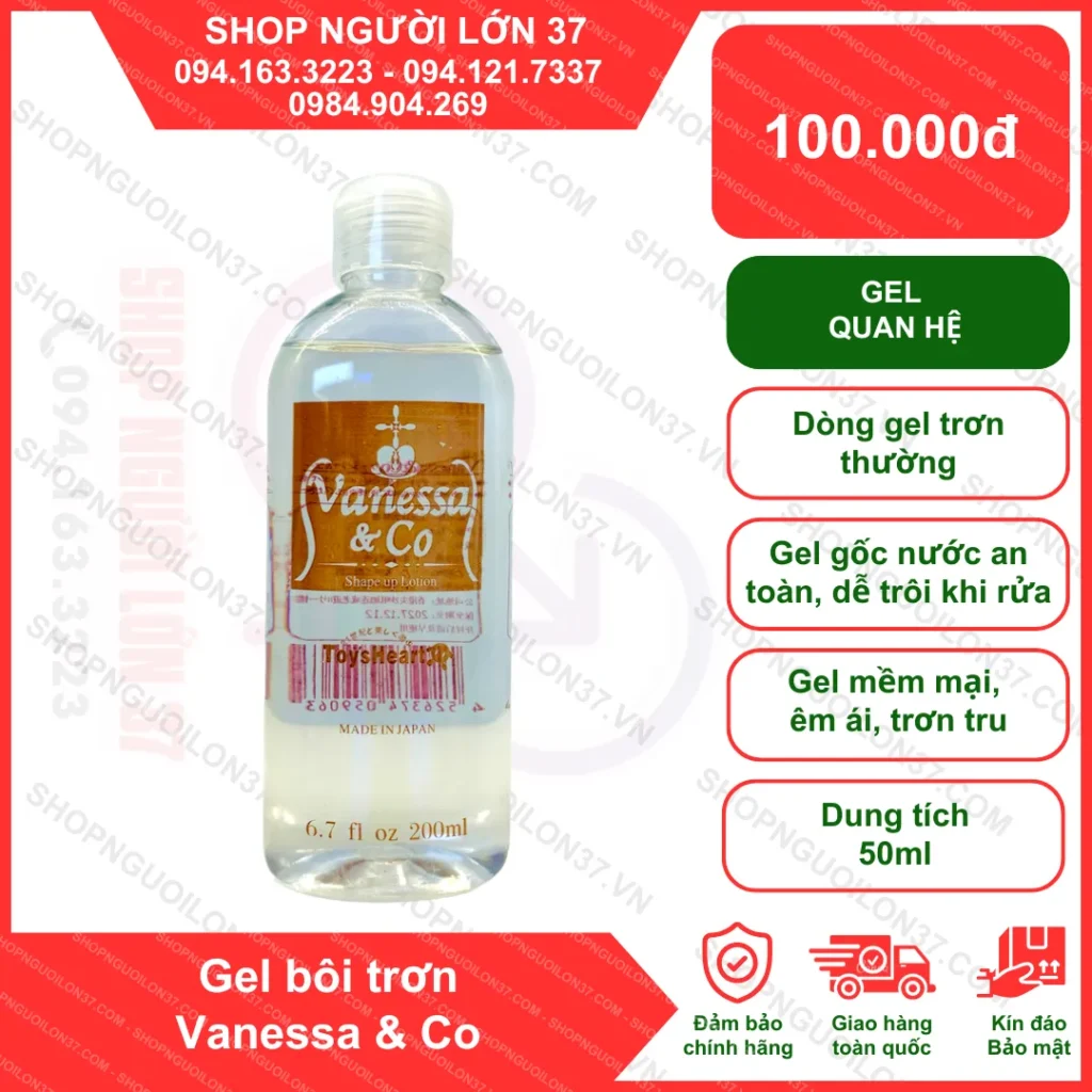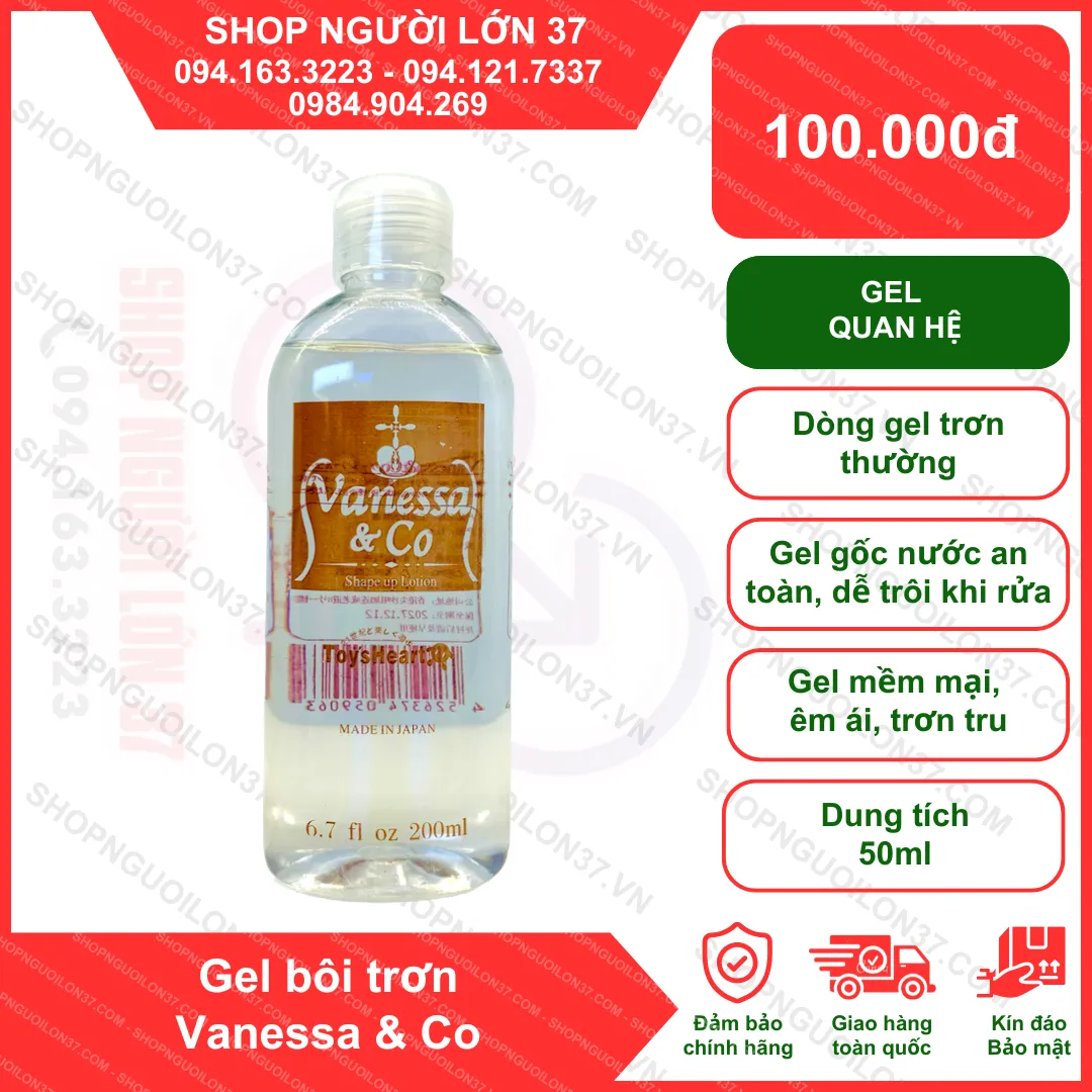 Nếu bạn đang muốn mua Gel bôi trơn gốc nước Vanessa & Co 200ml chính hãng, giá tốt và giao hàng kín đáo, thì đừng bỏ qua SHOP NGƯỜI LỚN 37 – địa chỉ uy tín hàng đầu tại TP Vinh và toàn quốc.