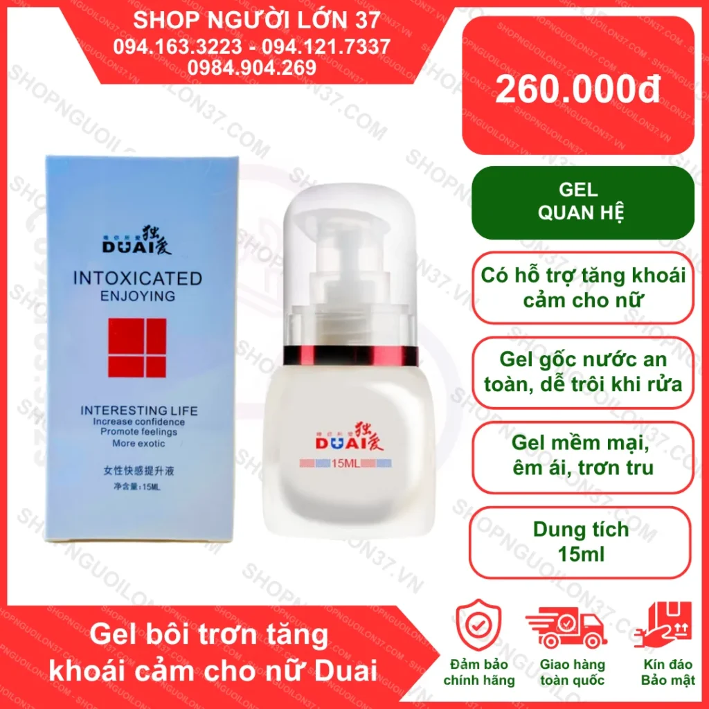 Nếu bạn đang muốn mua Gel bôi trơn tăng khoái cảm nữ Duai Intoxicated – Chai 15ml chính hãng, giá tốt và giao hàng kín đáo, thì đừng bỏ qua SHOP NGƯỜI LỚN 37 – địa chỉ uy tín hàng đầu tại TP Vinh và toàn quốc.